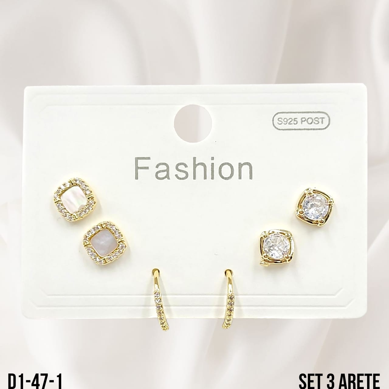 / ARETE Y ARGOLLA SET 3 PARES (ENCHAPADO) – D1-47-1