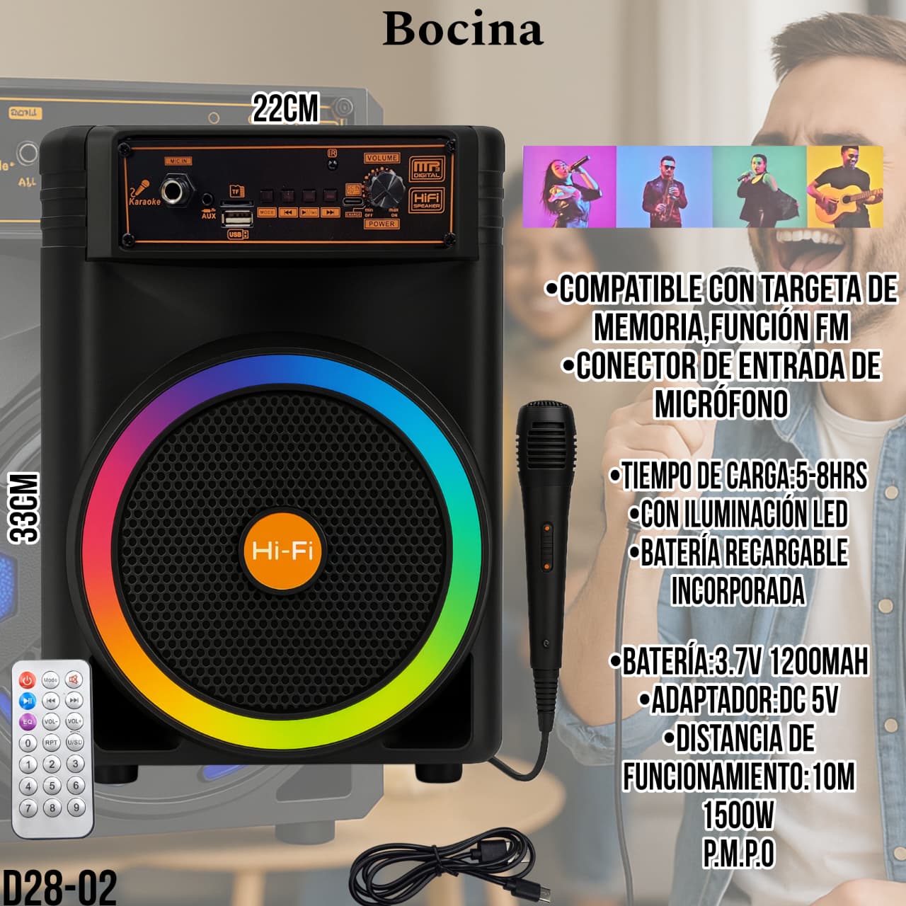 / BOCINA (1500W PMPO) C/MICROFONO YE-803 – D28-02