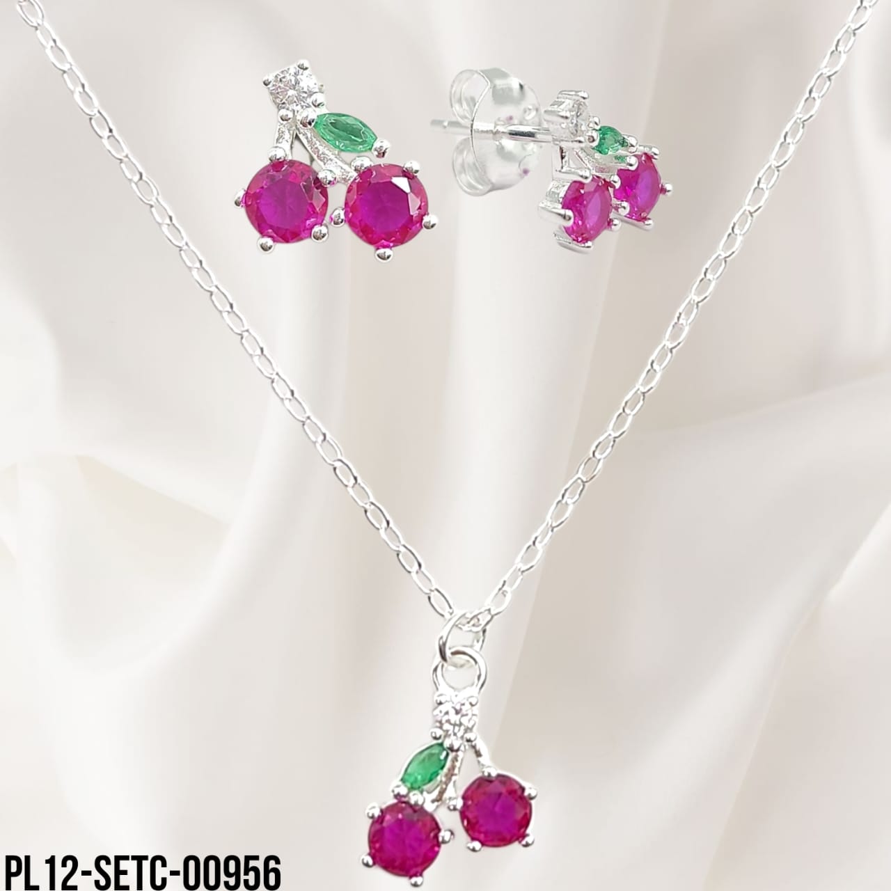 CADENA CON DIJE MAS ARETES (CHERRY) – SETC-00956