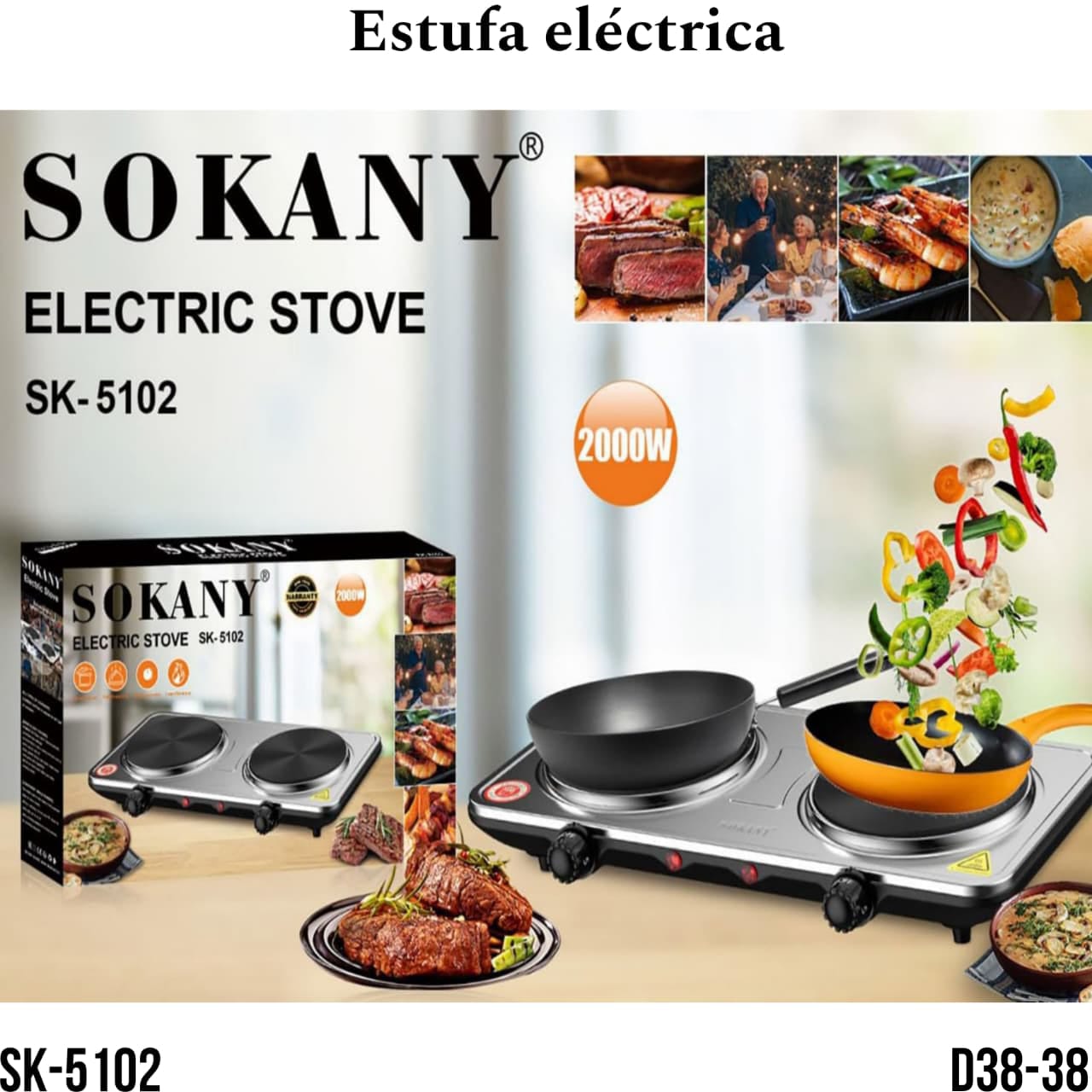 ESTUFA ELECTRICA SOKANY (2H) - SK-5102 (D38-38) cantidad