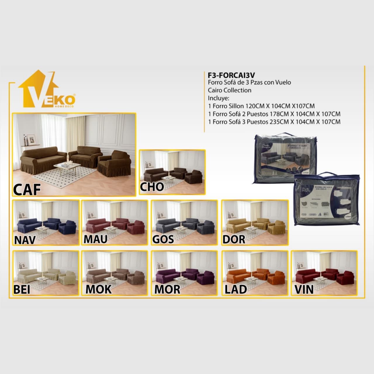 / FORROS P/MUEBLES GRAN/MED/PEQ – F3-FORCAI3V