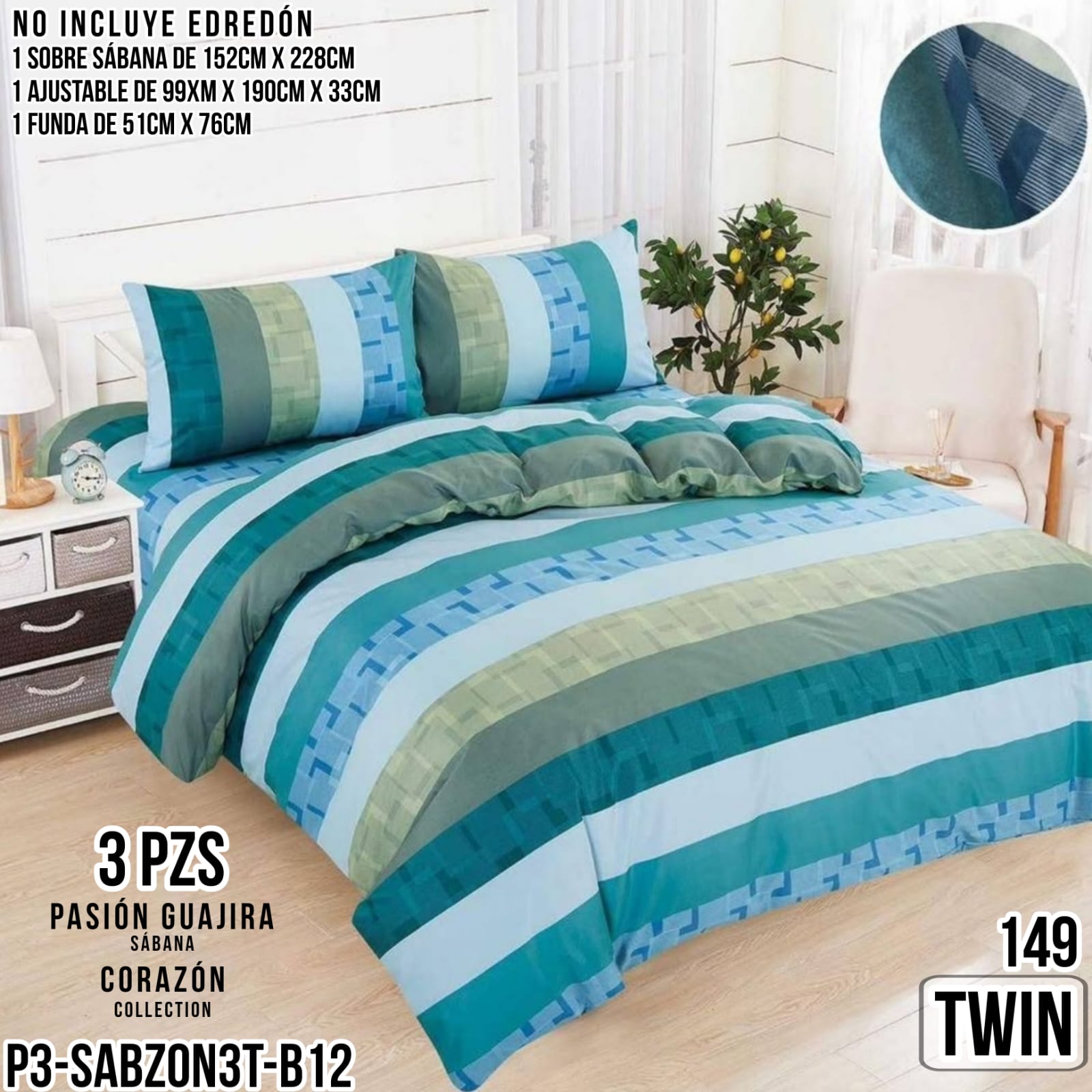 / JUEGO DE SABANA TWIN (3 PZS) – P3-SABZON3T-B12-1