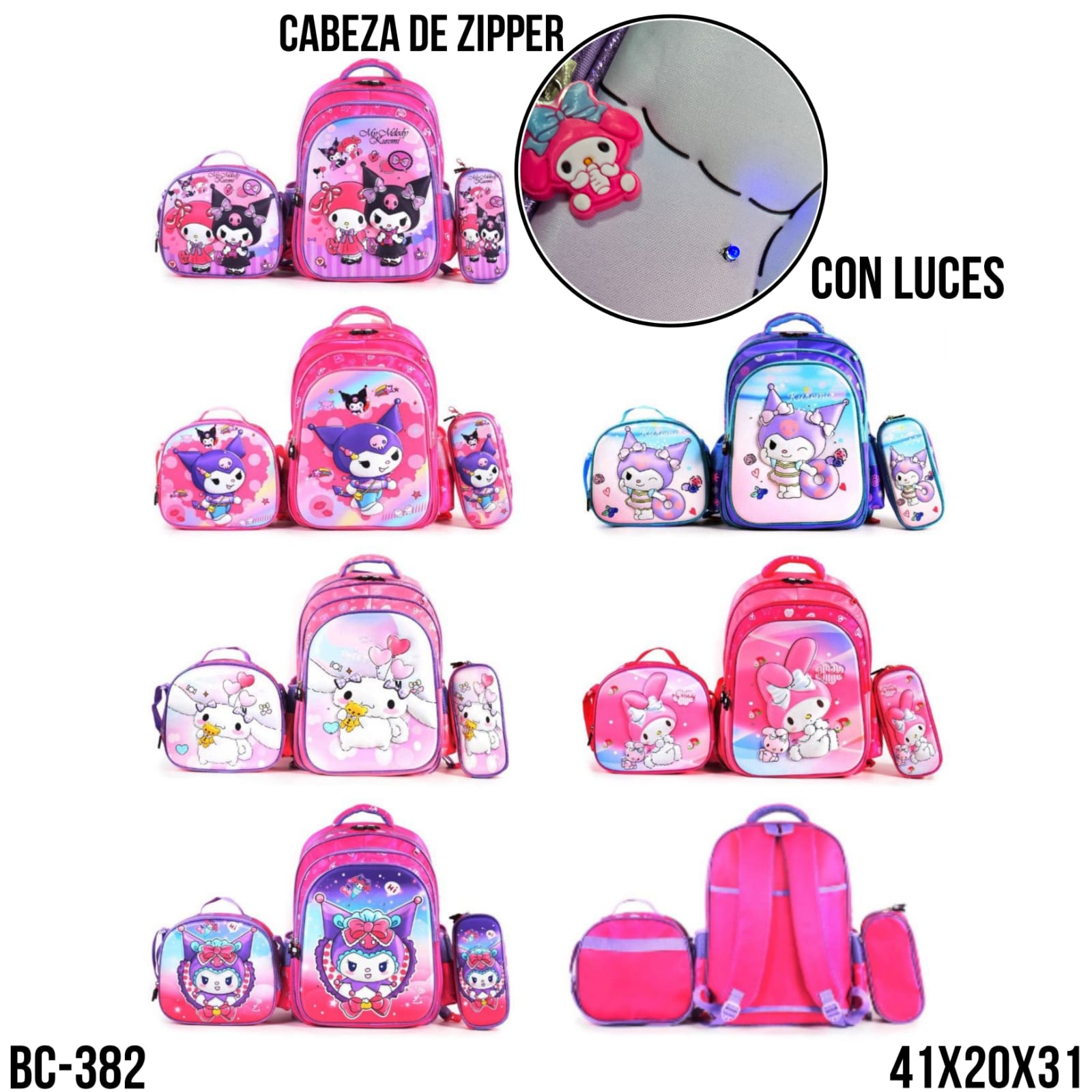 MOCHILA CON LUCES (41X20X31) 3 PZS – BC-382