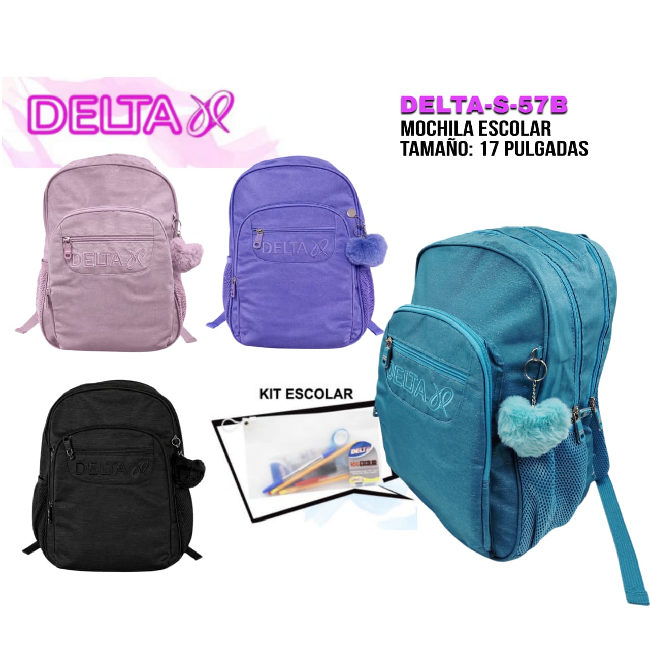 / MOCHILA DELTA+KIT ESCOLAR (17 PULG) -DELTA-S-57B