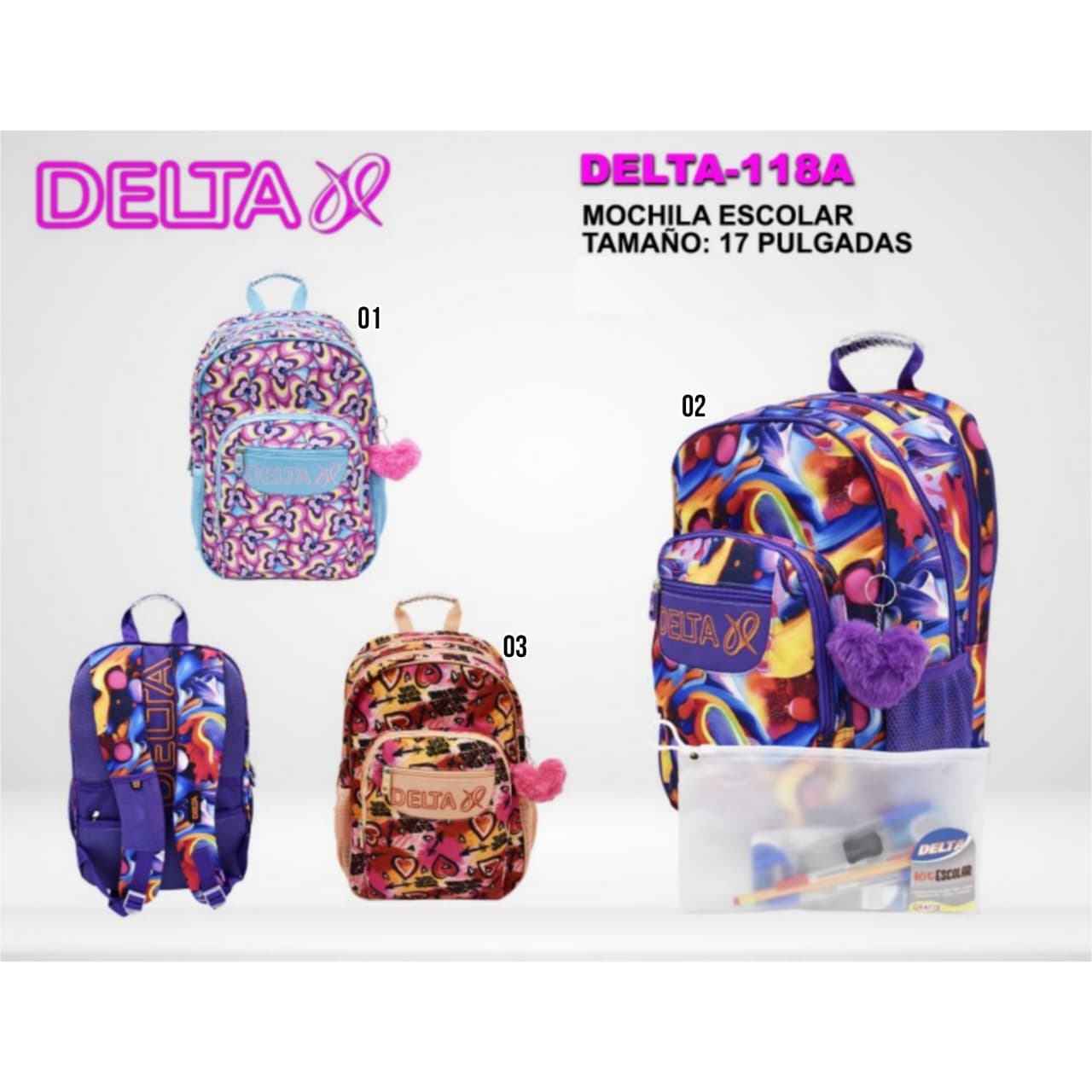 / MOCHILA DELTA+KIT ESCOLAR (17PULG) – DELTA-118A