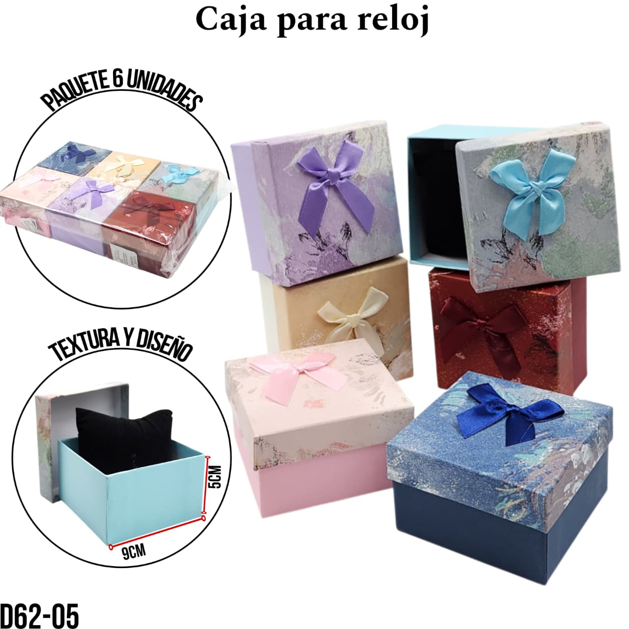 / PAQ. CAJA RELOJ (6 PZS) (9X5CM) – D62-05