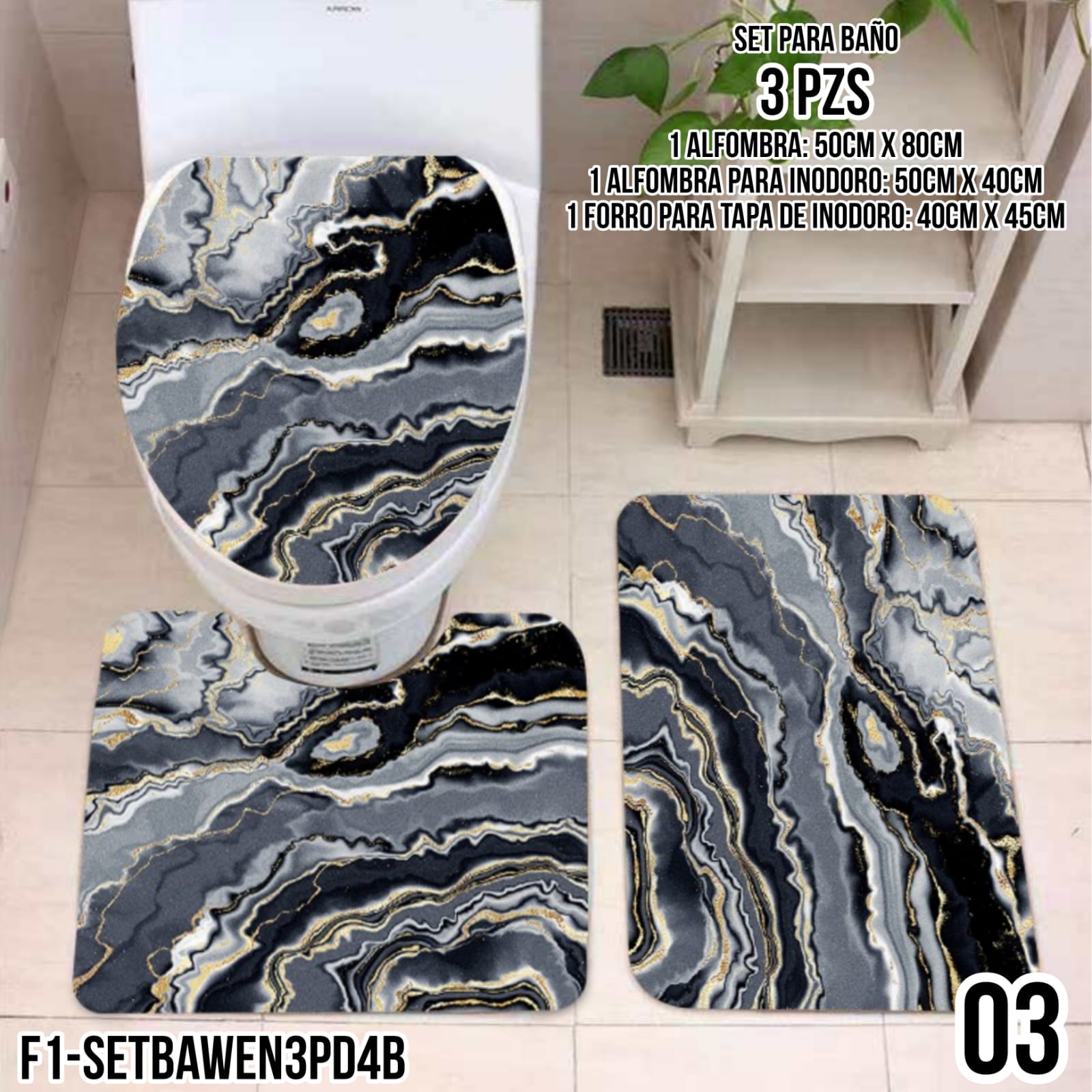 / SET D/ALFOMBRAS P/BAÑO 3PZS – F1-SETBAWEN3PD4B